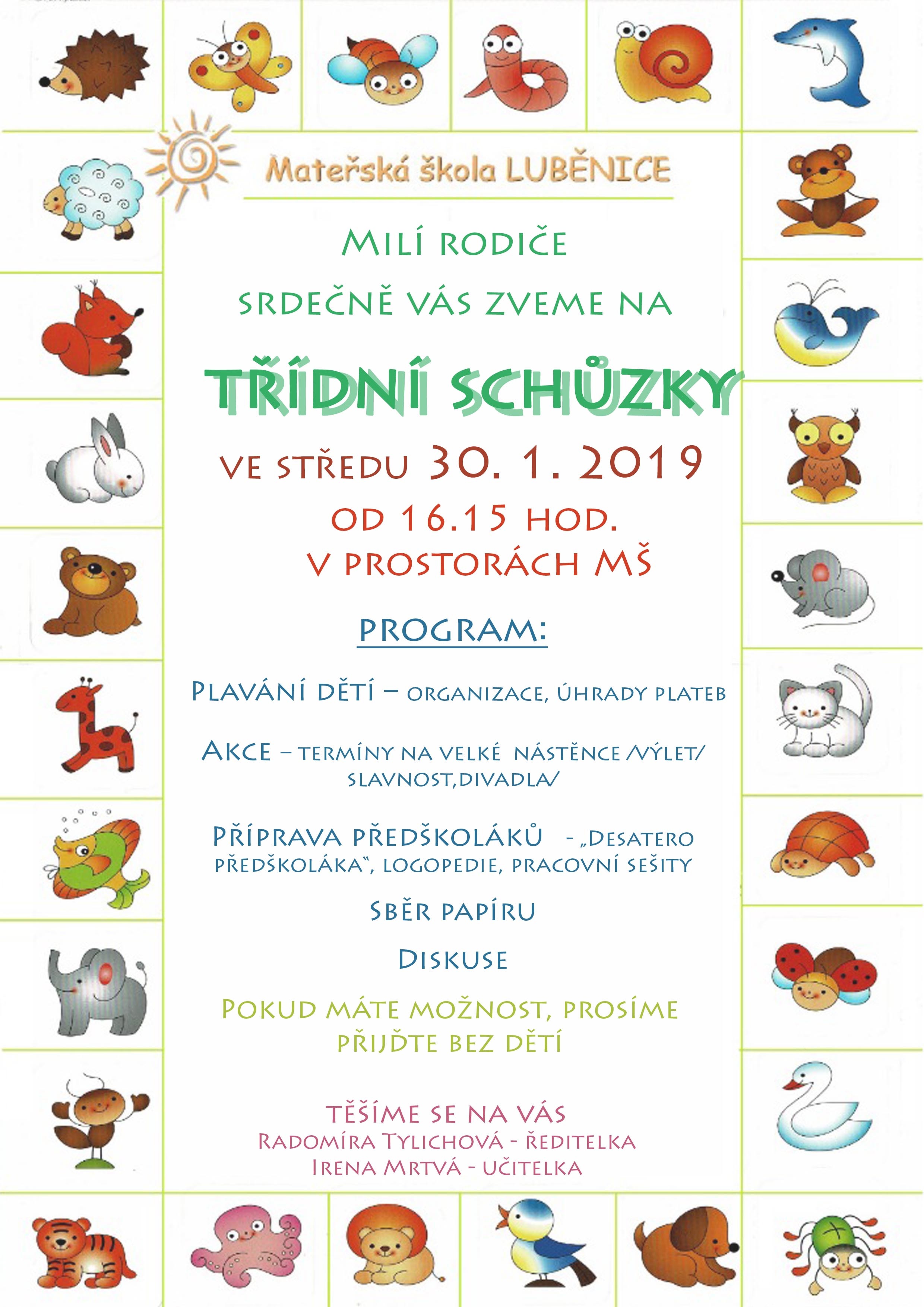 Zápis do MŠ Luběnice se bude konat ve čtvrtek dne 2. května 2019 od 13,00 hod. do 16,00 hod. v budově MŠ Luběnice.